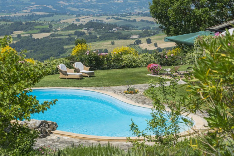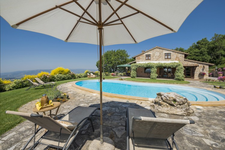 A scenic 12-minute drive from the Todi city centre, lies Villa I Grifoni. Perched on a hilltop, I Grifoni offers an unobstructed panoramic view of the surrounding valleys, with beautiful Todi in the near distance. With its spectacular south-facing garden and olive grove and large outdoor pool, I Grifoni is a true Umbrian gem.