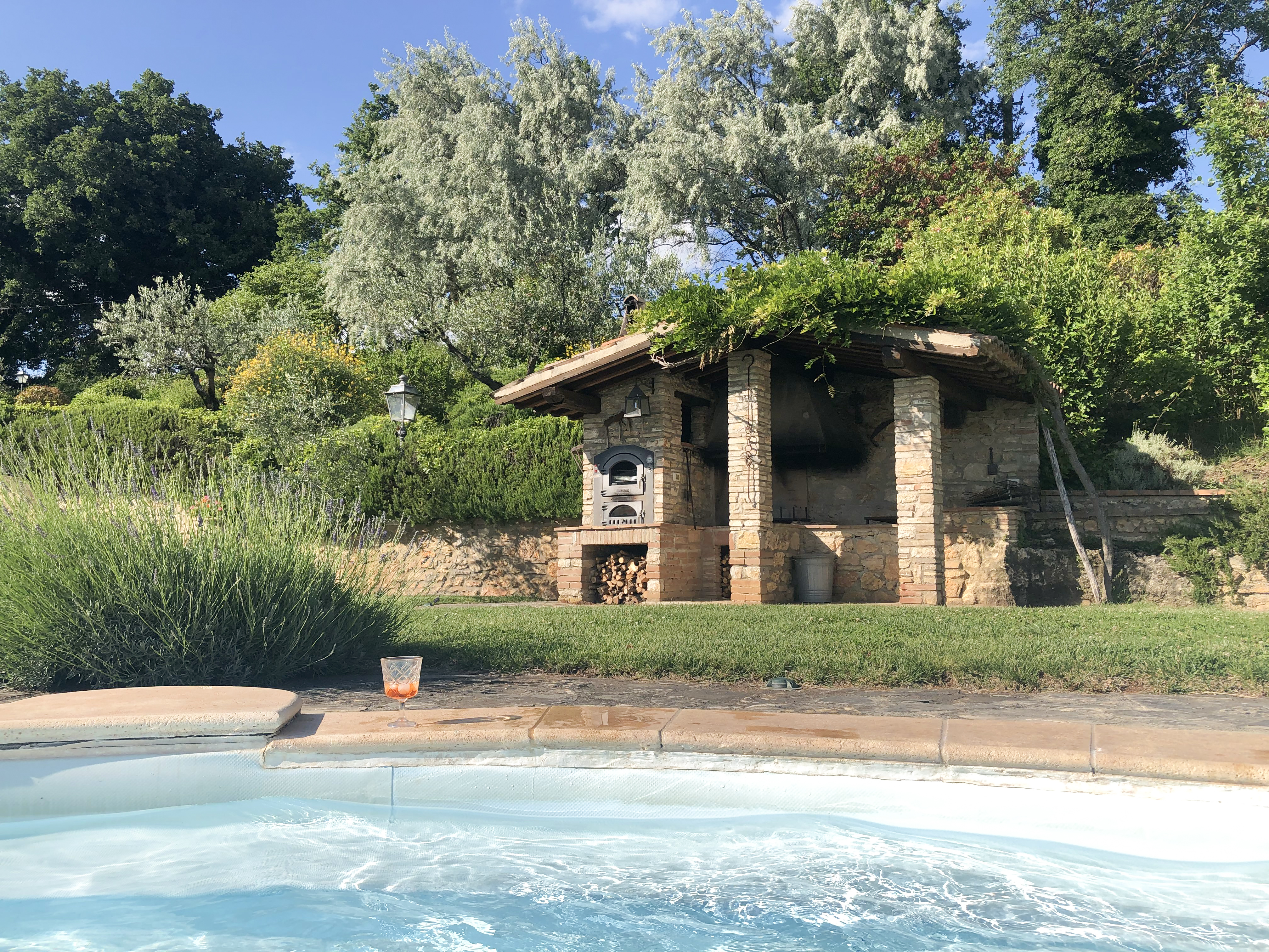 Situated slightly above the villa, with a wonderful view of the garden and surrounding valleys, lies a sizeable, fully covered loggia with a table tennis table. For families with children it’s an excellent kids hang-out.